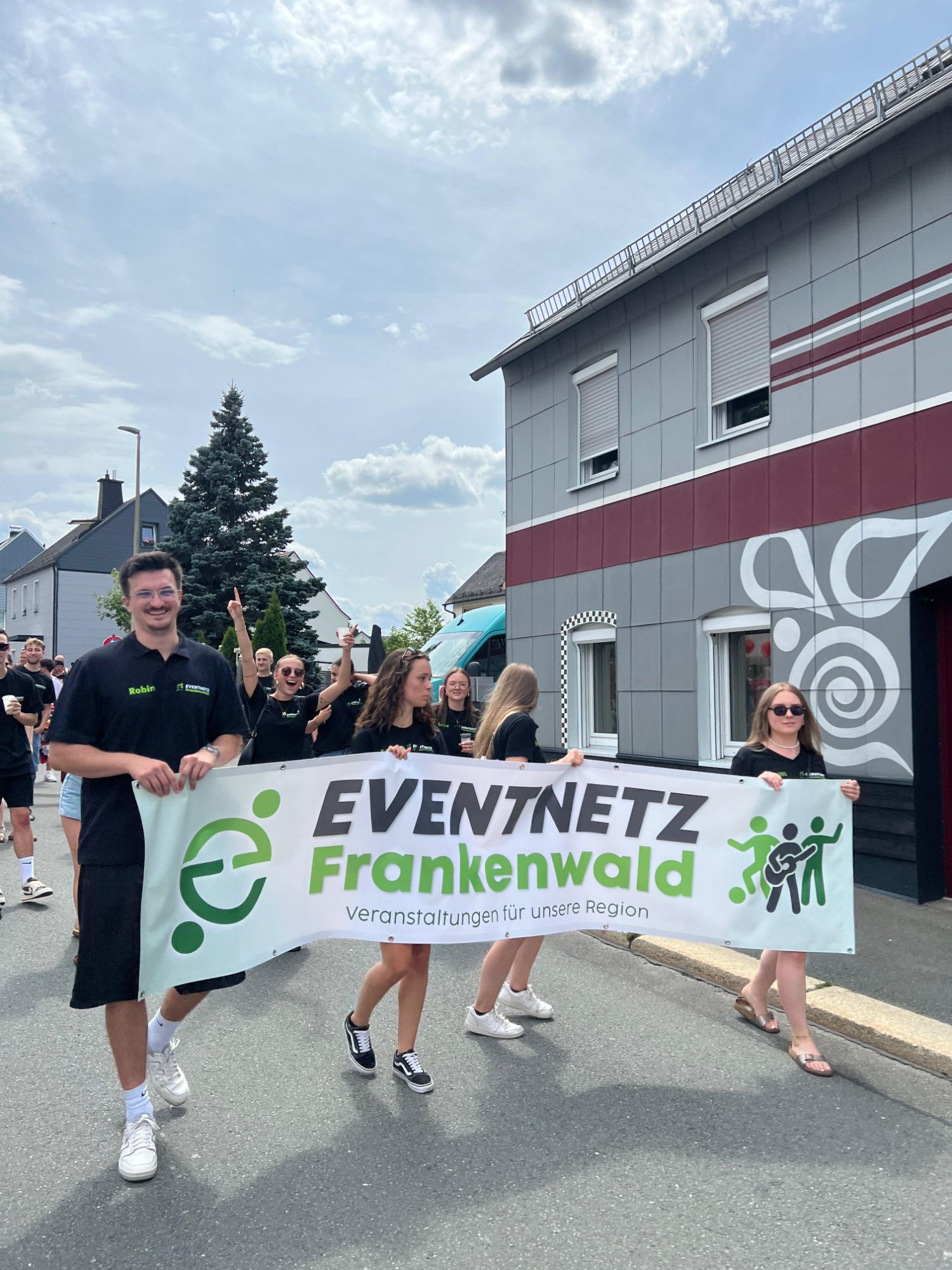 Erstmals war auch unser Verein Teil des Festzugs. Für uns war es eine gute Gelegenheit, Präsenz zu zeigen und uns erstmals der Region vorzustellen. Froh waren wir außerdem über den pünktlich eingetroffenen Vereins-Merchandise - ein Zeichen für unseren Zusammenhalt und Wiedererkennungswert.